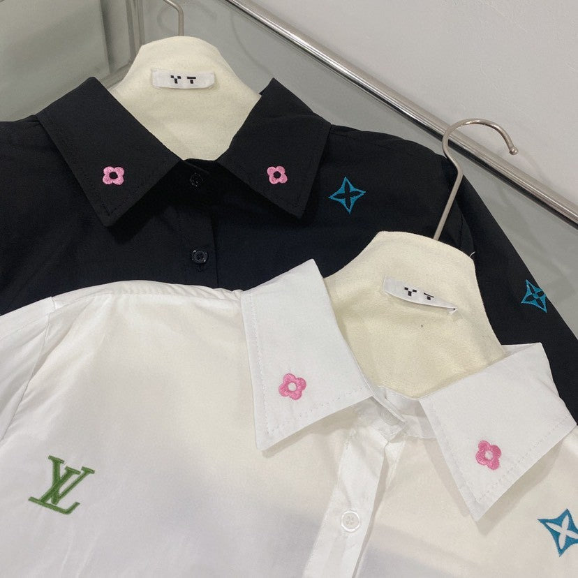 - Toile monochrome : Les bases blanches et noires austères amplifient les teintes vives de la broderie, transformant chaque chemise en une toile vivante d'énergies contrastées - raffinées mais ludiques, structurées mais libres.
