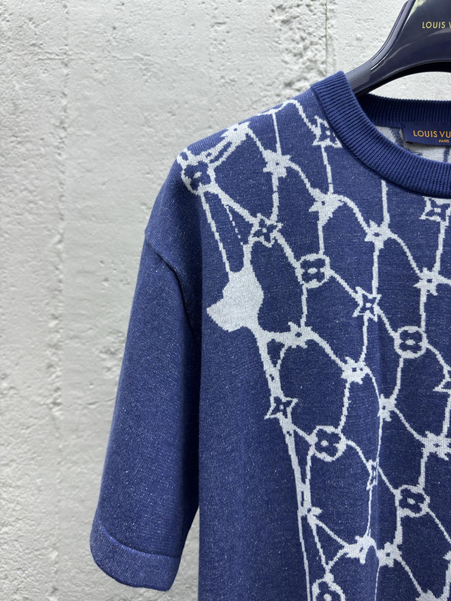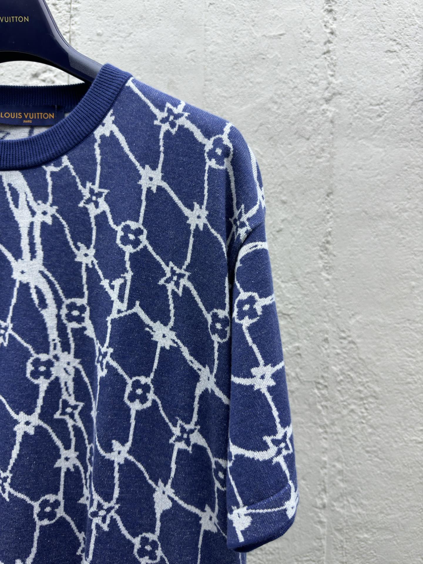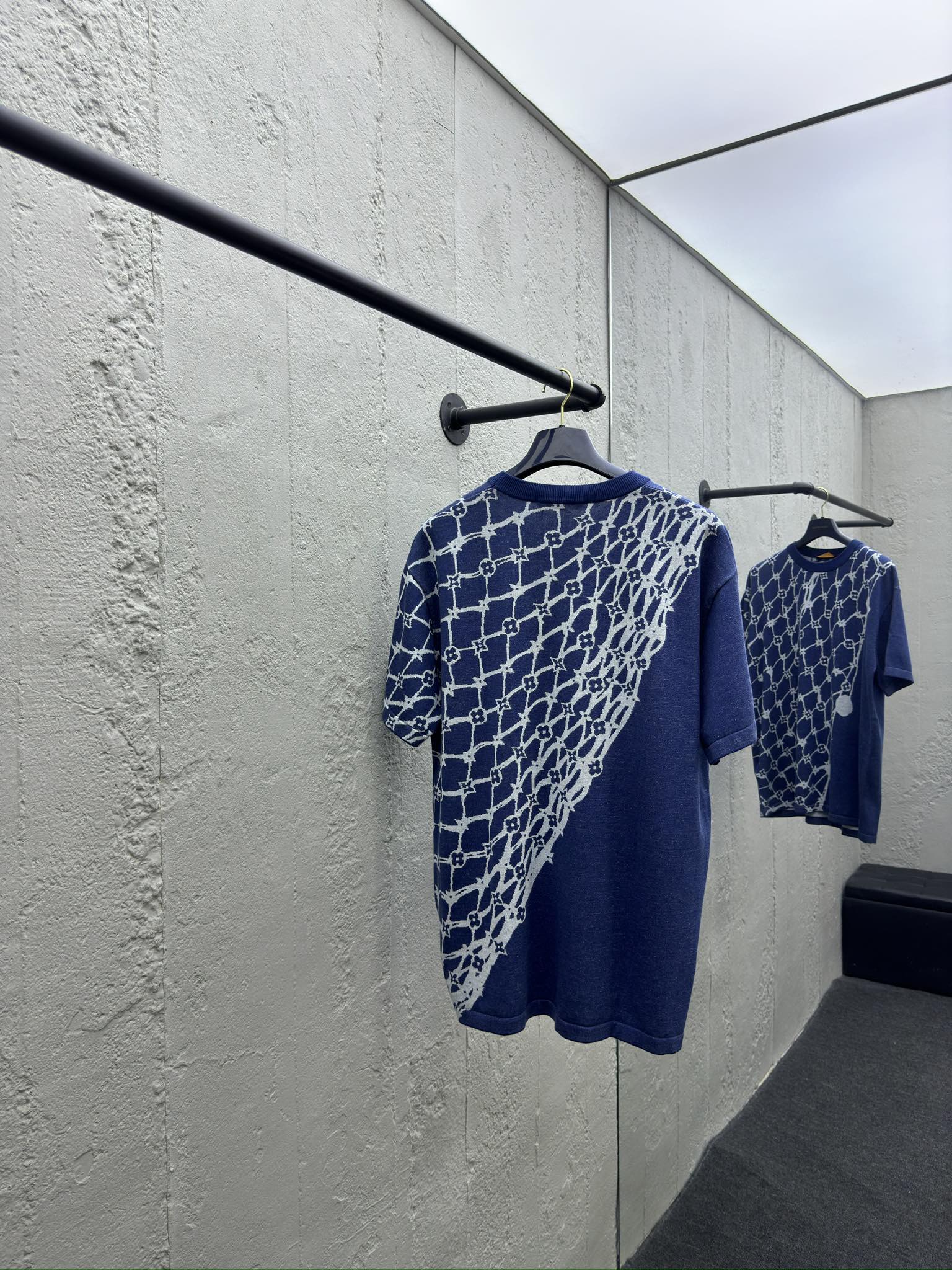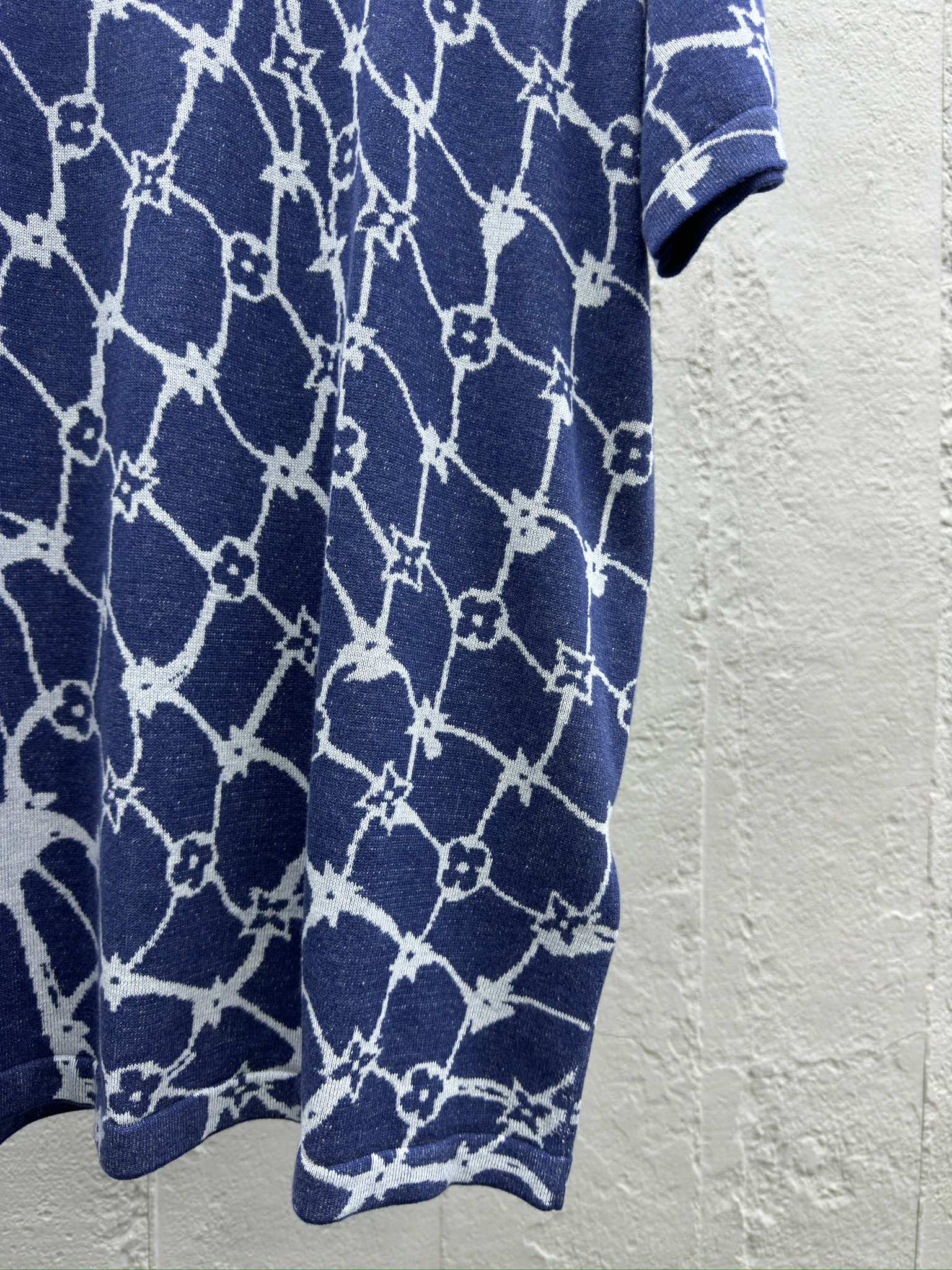 Le temps de tissage de la machine intelligente est de 530 minutes par pièce. Ce temps de tissage est très long, et il faut plusieurs heures pour régler la machine lors de sa première utilisation. Comme il s'agit d'une machine bicolore anti-couverture, un réglage mal effectué peut entraîner des imperfections. Des irrégularités, des fils volants et des points manquants sont possibles. 20 points sont utilisés pour la couture et 7 distributeurs de fil sont utilisés pour le motif des manches courtes. Cette méthode est très différente de la version originale. Le bas est différent et l'envers est flou. S'il n'est pas net, le motif floral est à peine visible, voire l'ensemble du patch est bleu et ne présente aucun motif. L'épaisseur est beaucoup plus importante et la surface est très velue. En revanche, la presbytie est clairement visible. Le résultat est d'une grande finesse et parfaitement restauré. Le concept original.