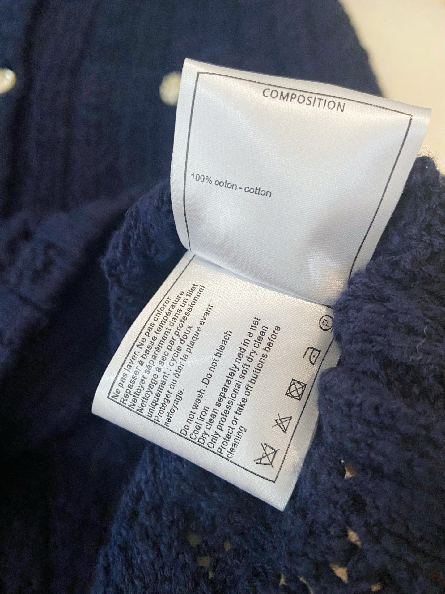 - Knit Heritage: The cable-knit texture, a whisper of couture’s artisanal legacy, is reimagined in sleek navy — classic craft, reborn as modern minimalism.