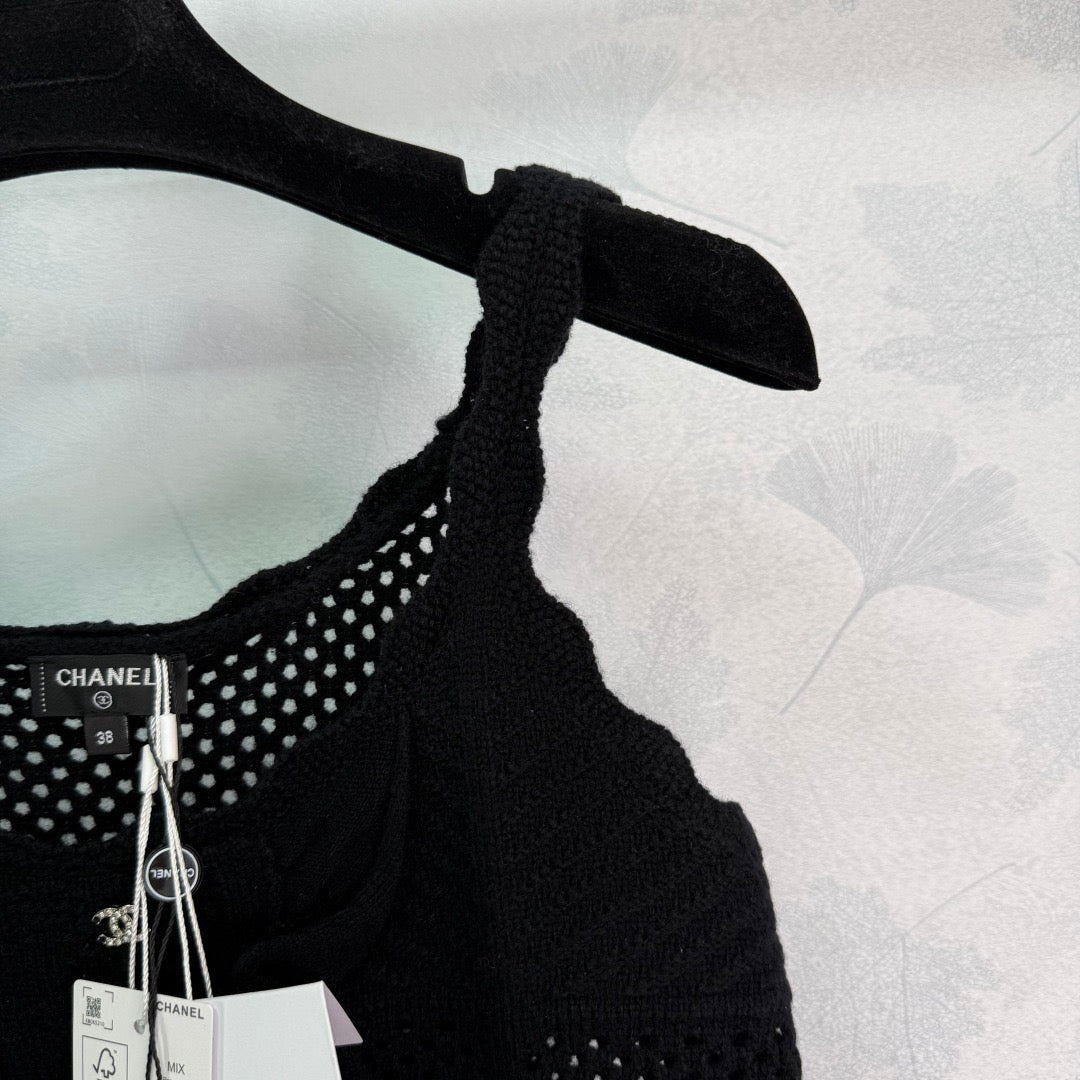 25A new black hollow camisole, exquisite small logo on the chest, hollow design is very textured. Knitted fabric is breathable and comfortable, looks good with or without