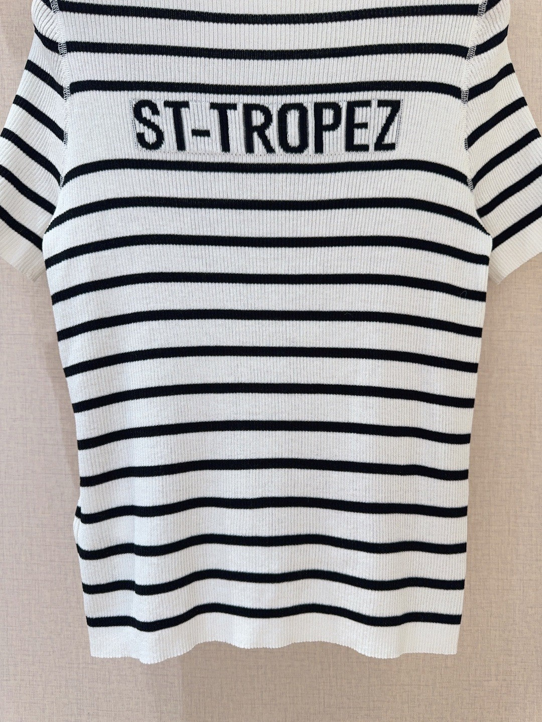 Meet the dual-tone striped ribbed knits that redefine versatility — bold black-and-white for urban edge, soft pink-and-white for romantic charm. Each tee blends classic stripe DNA with signature text embroidery, wrapped in a body-sculpting ribbed knit that flatters every curve.