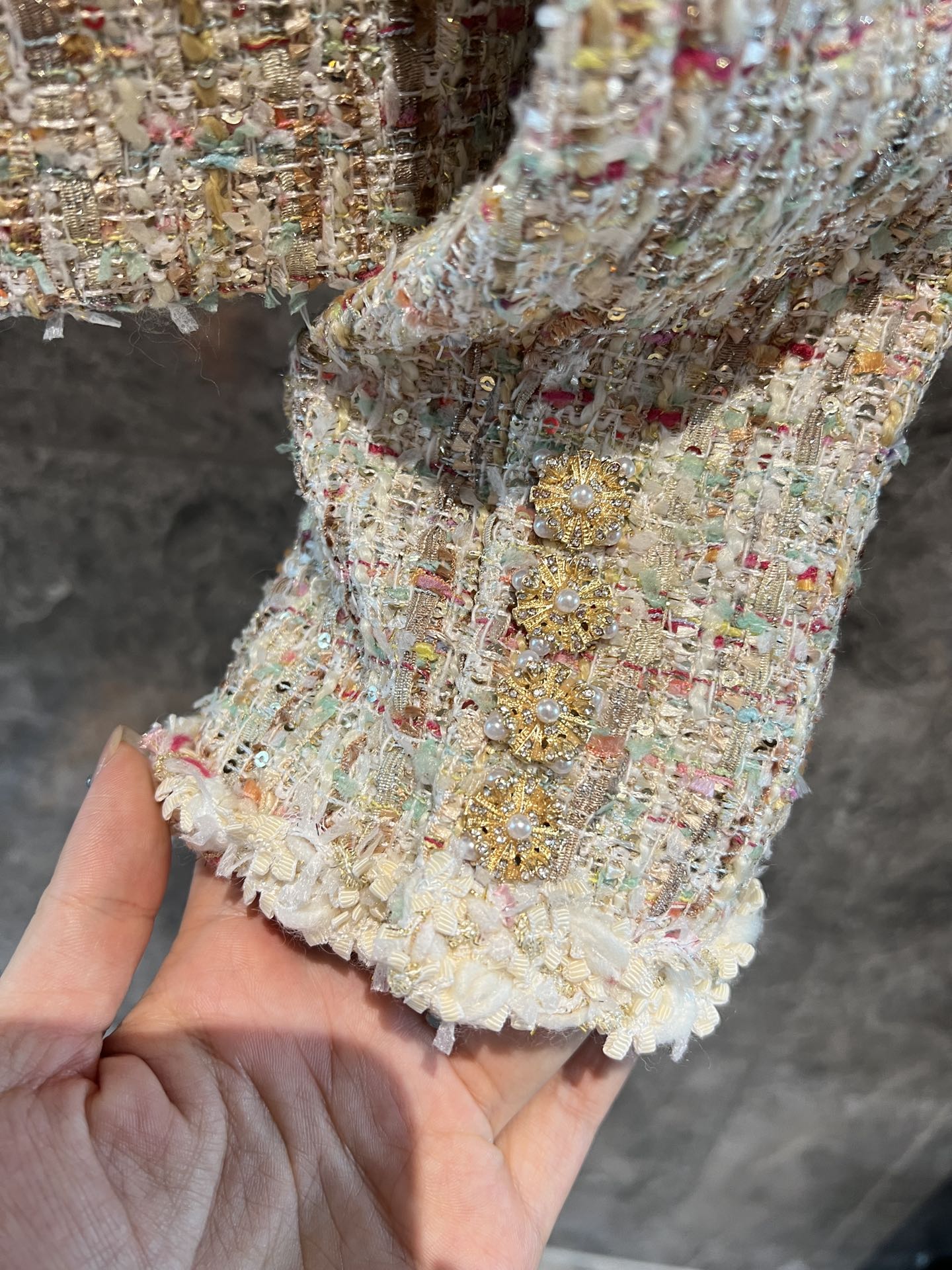 Made of colorful woven slub fabric, full of high-end feel. The color is very fresh and elegant. Customized webbing/rhinestone pearl buckle, full of high-end feel, filling the autumn and winter atmosphere.